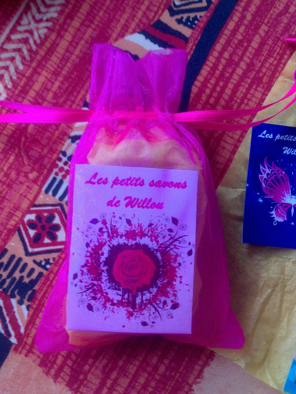 j’ai été super gâtée avec mes ptits savons. J’ai de quoi me laver pendant quelques semaines. J’ai utilisé ce soir sous la douche le papillon rose (désolée ma soeur mais je ne suis pas capable de te dire ce que vous avez mis dedans). Je pense que c’est le savon exfoliant.J’ai la peau toute douce maintenant.