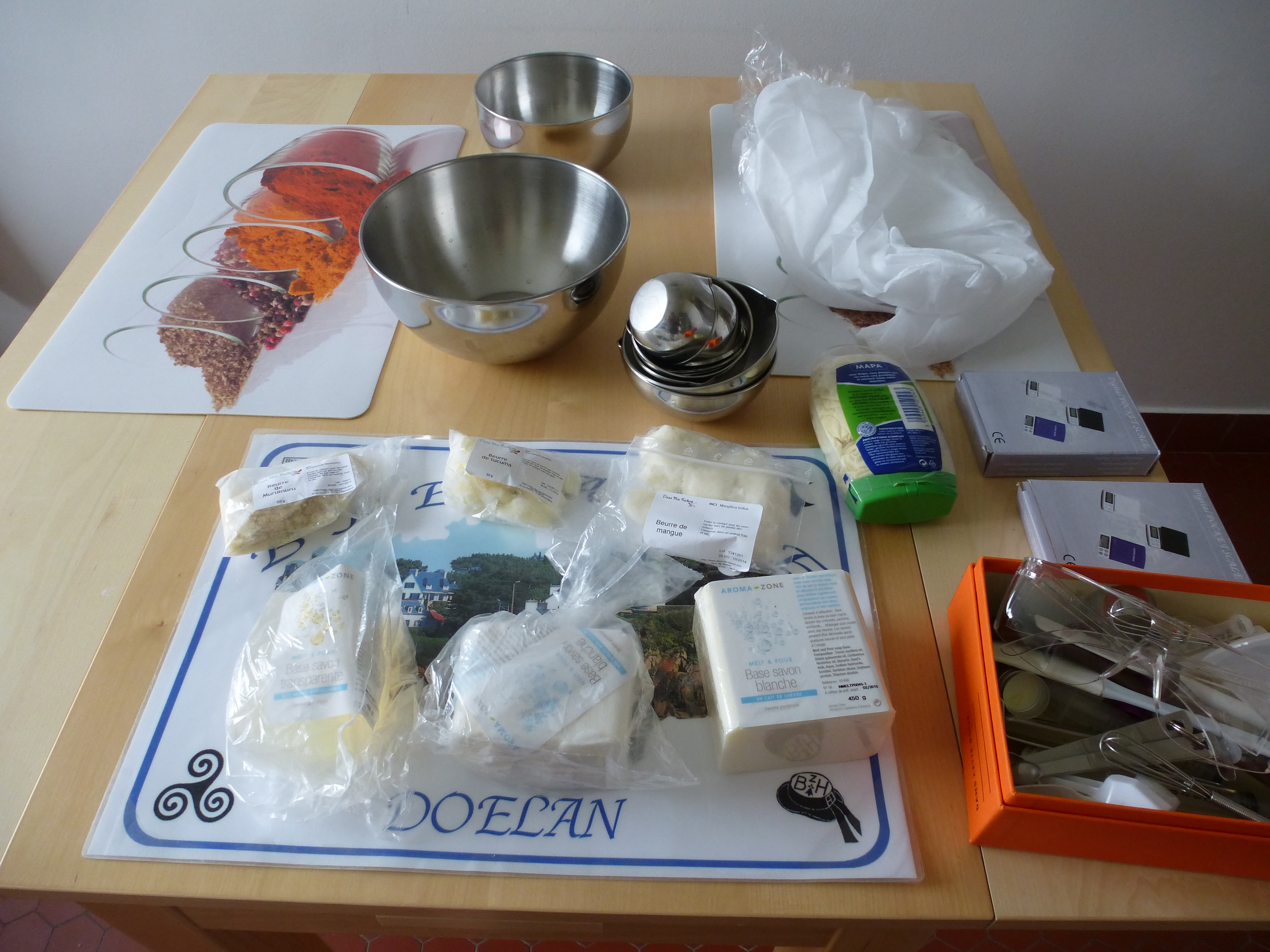 Pour compléter mon post d’il y a quelques temps déjà … (ICI) sur le Melt & Pour, voici un résumé (rapide) de l’initiation de mon neveu à la fabrication de savons (en Melt & Pour hein, pas de SAF !!!).