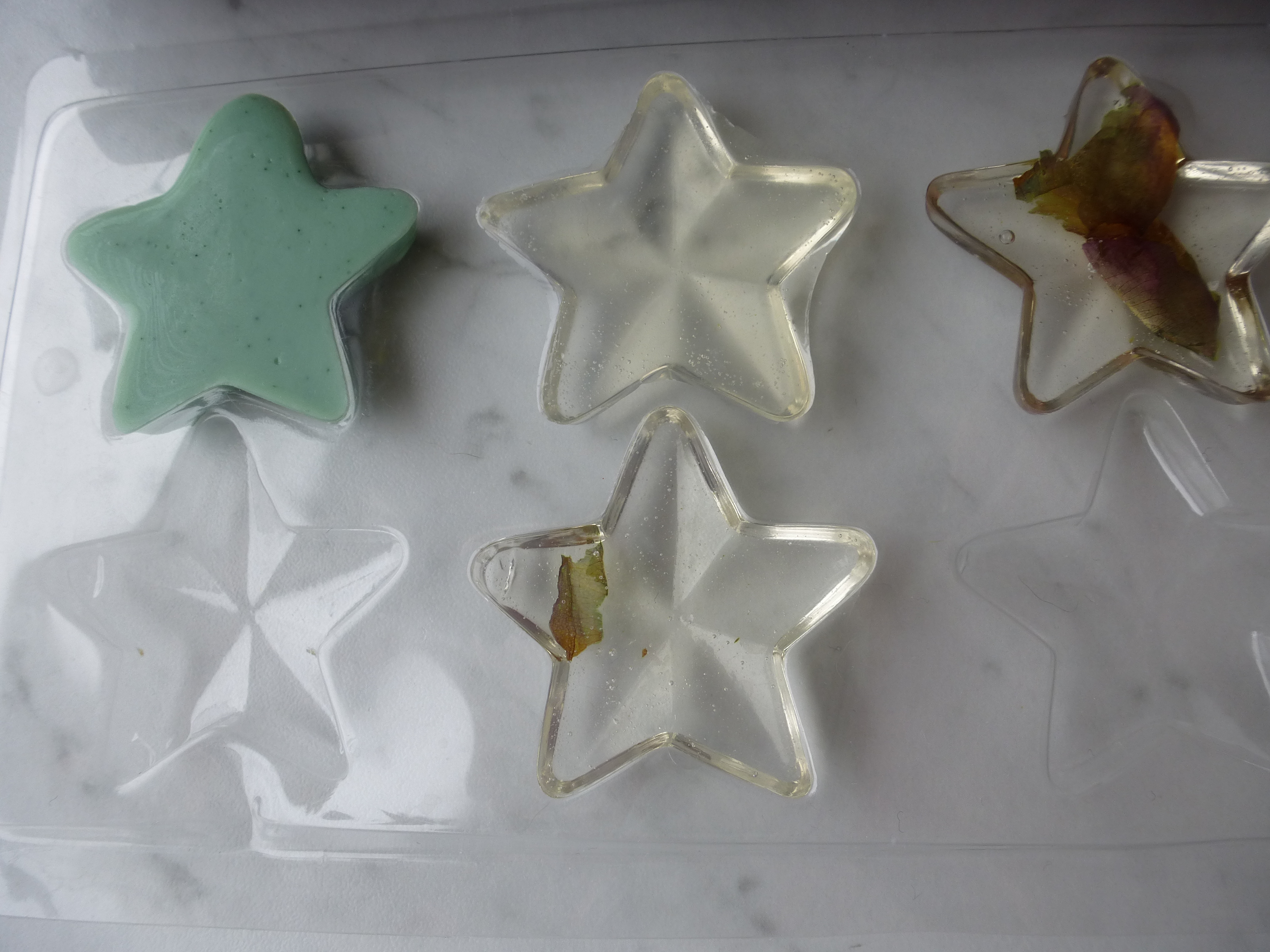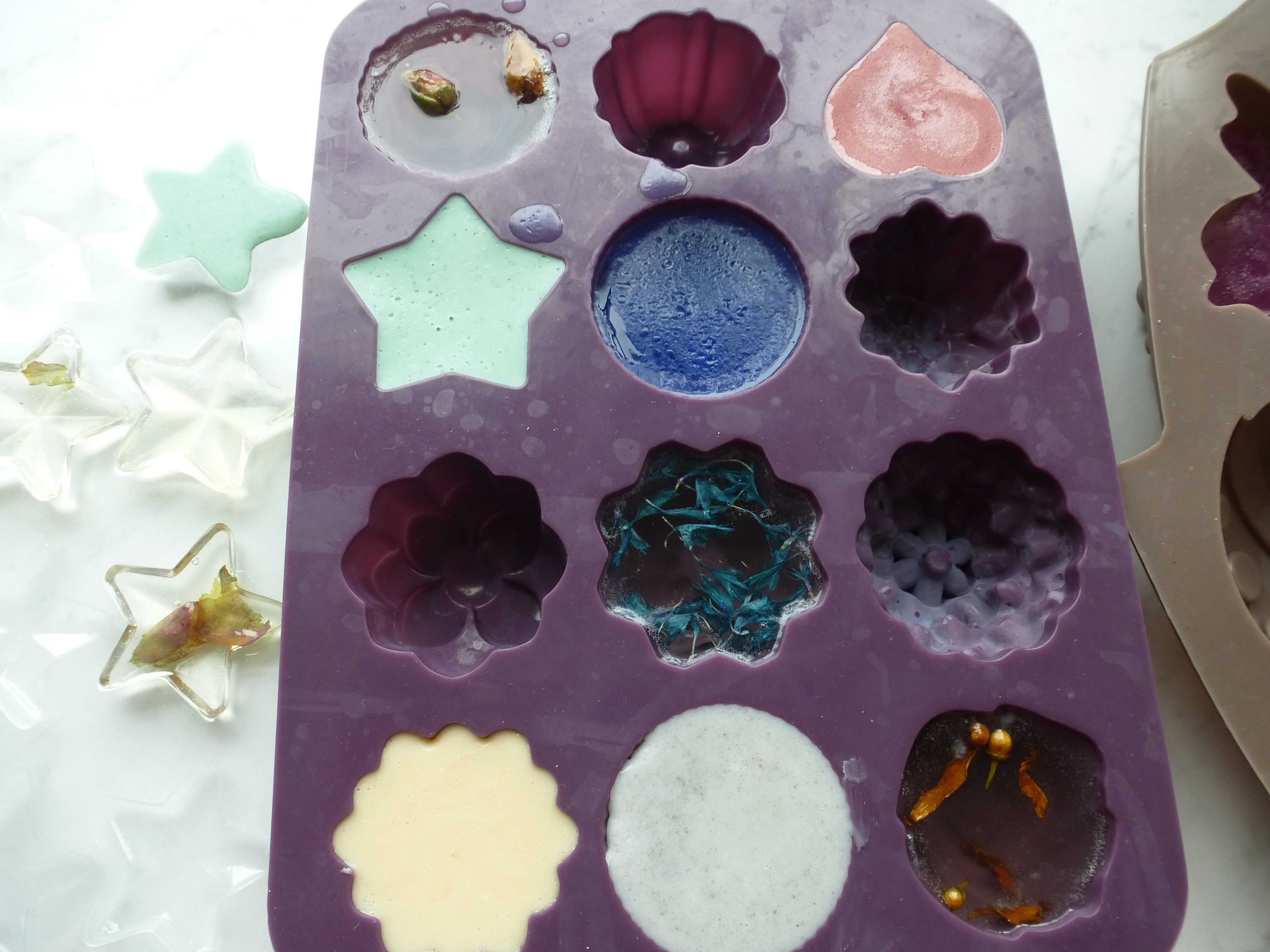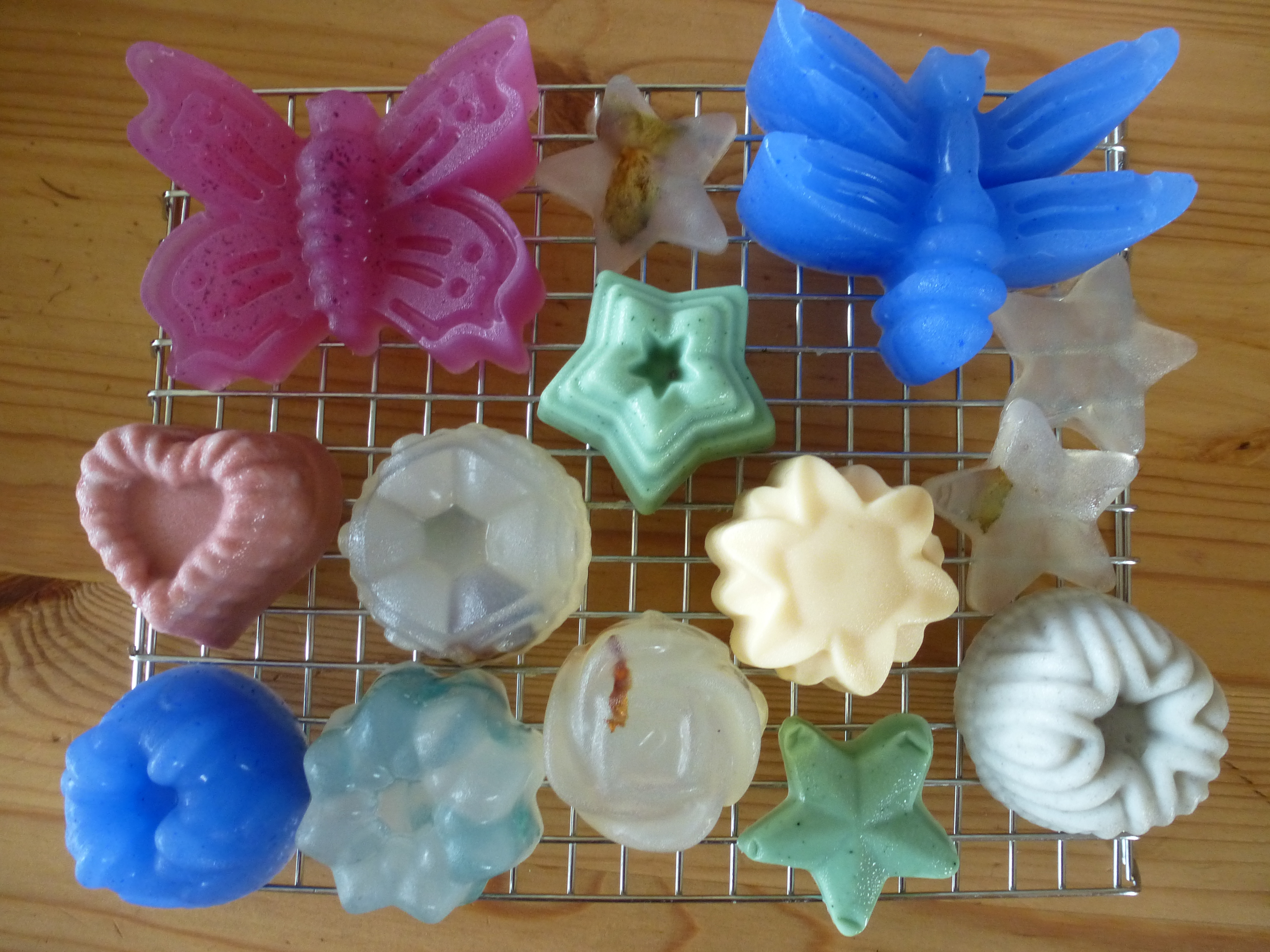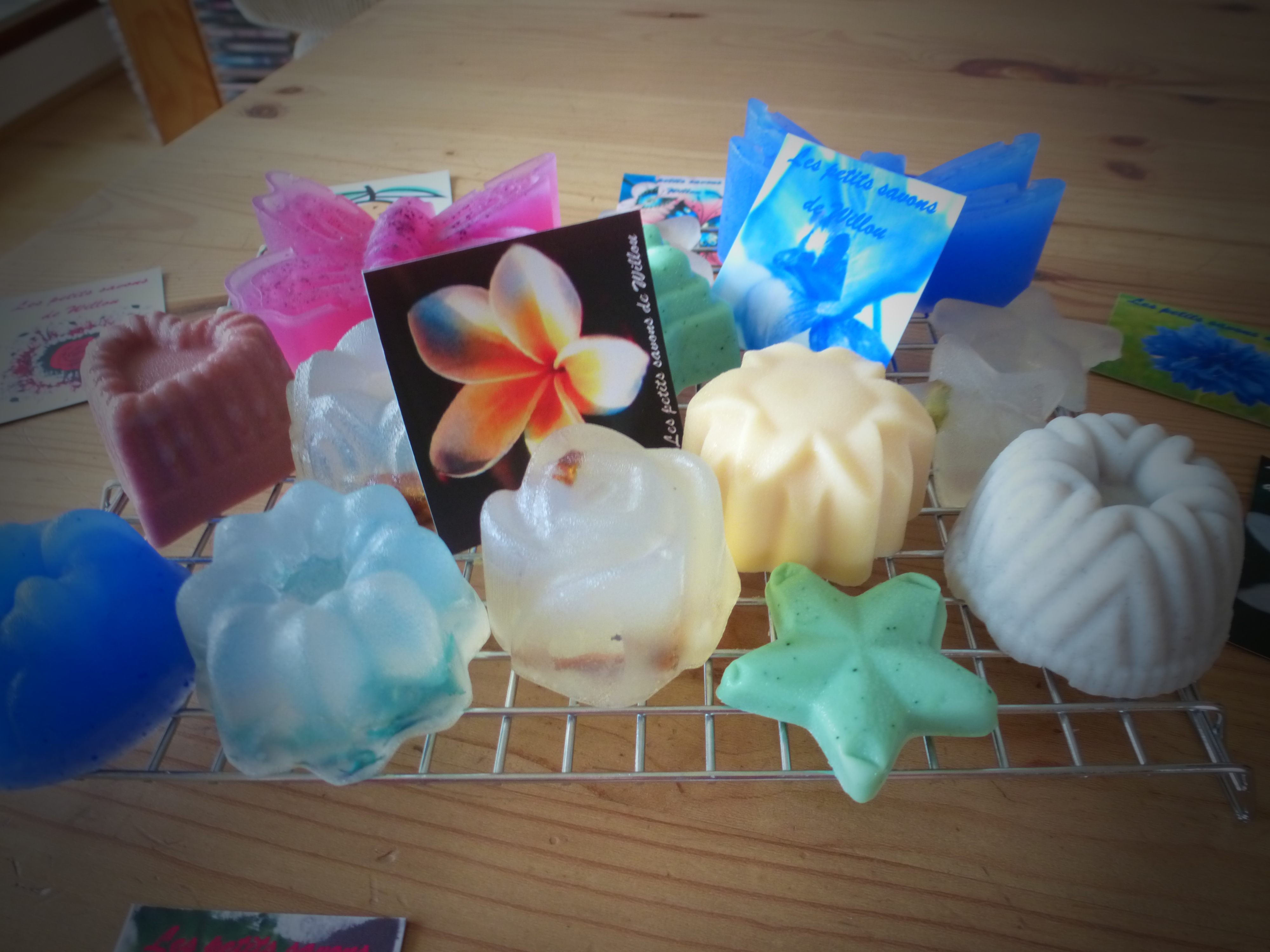 ENFIN (parce que 15 minutes, c’est long …), démoulez et posez les savons sur une grille de séchage et … admirez !!