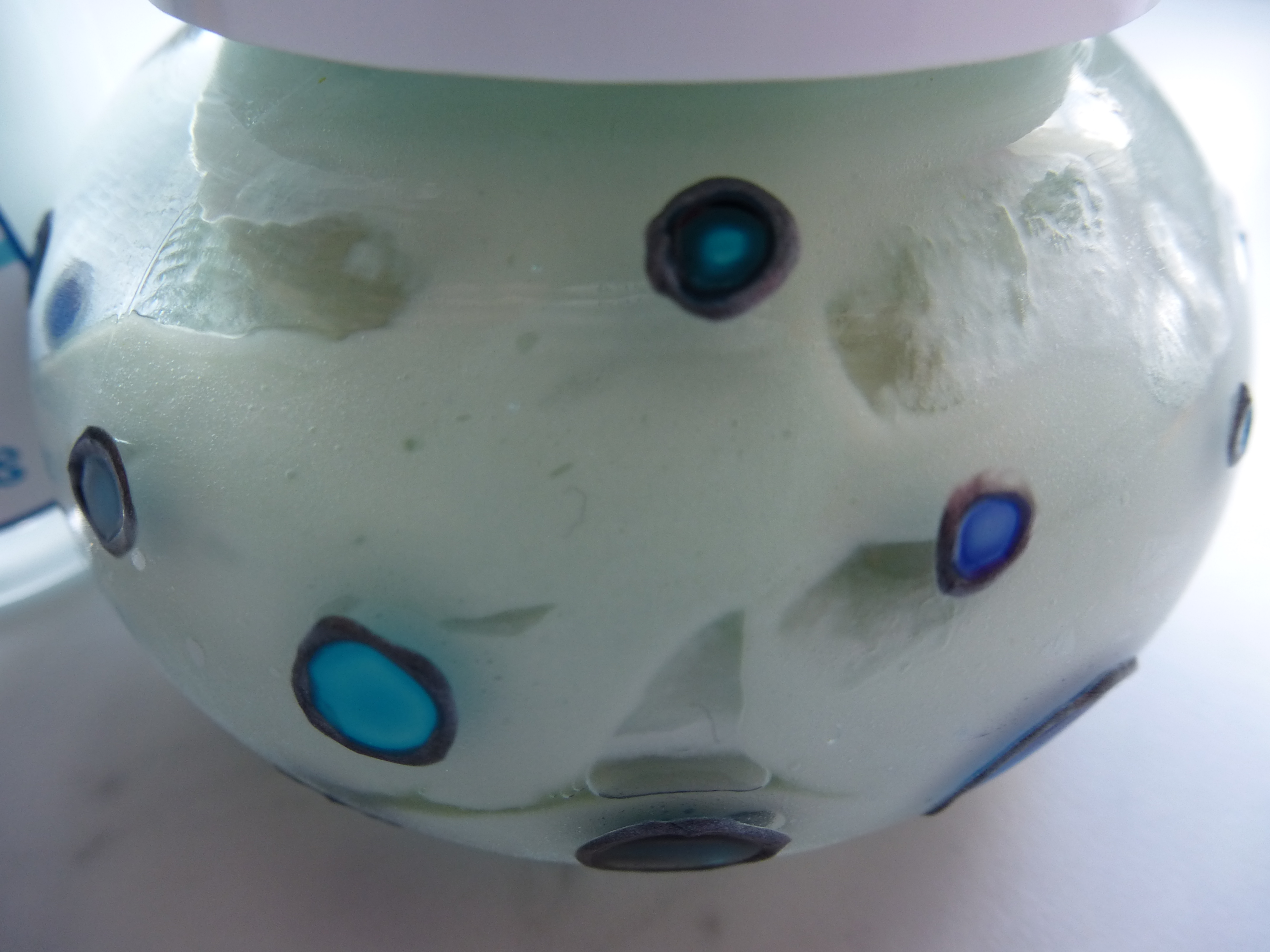 Bon, autant être honnête, ma crème a déphasé !!! J’ai dû la reprendre à la Naturalis (1 programme chaud et 3 programmes froids), puis au fouet dans un bol d’eau froide et là j’ai réussi l’émulsion… qui a déphasé à nouveau !!! J’ai donc rajouté un peu de gomme xanthane et j’ai obtenu cette magnifique crème chewing-gum !!! Maintenant, elle est stable.