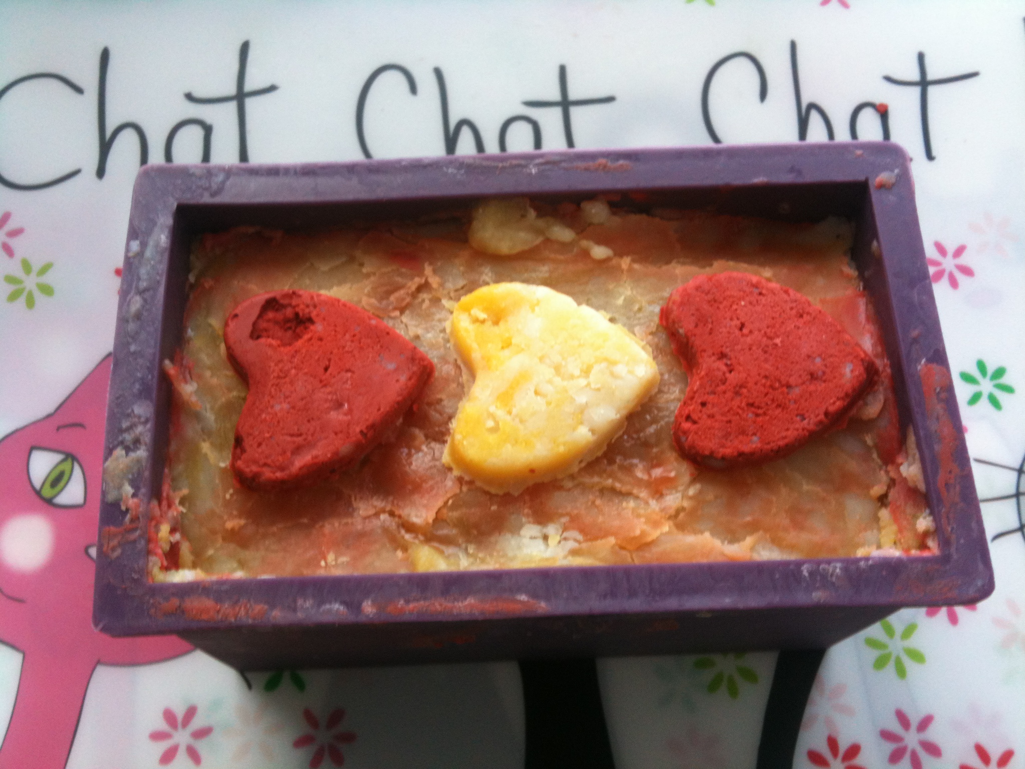 Et oui, un jour, j’apprendrai à faire des jolis savons, mais en attendant… je fais des savons très très moches, enfin surtout le premier, que je vous présente ce soir !!!