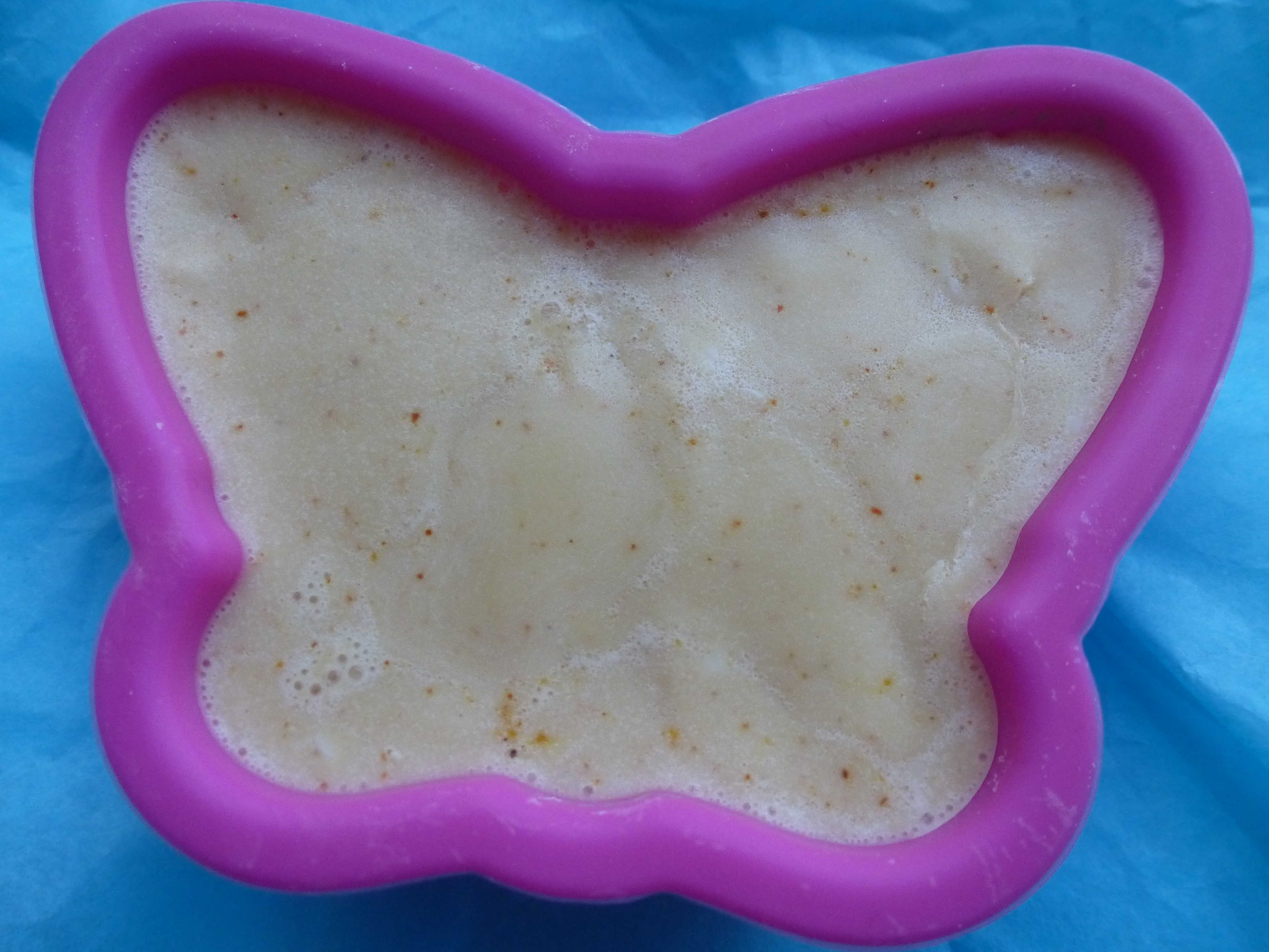 L’objectif étant de ne pas chauffer les actifs, j’ai préparé tous mes ajouts avant de faire fondre le Melt & Pour, car le savon durcit assez vite, alors il faut se dépêcher pour ne pas avoir à refaire fondre l’ensemble avant de le couler en moule.