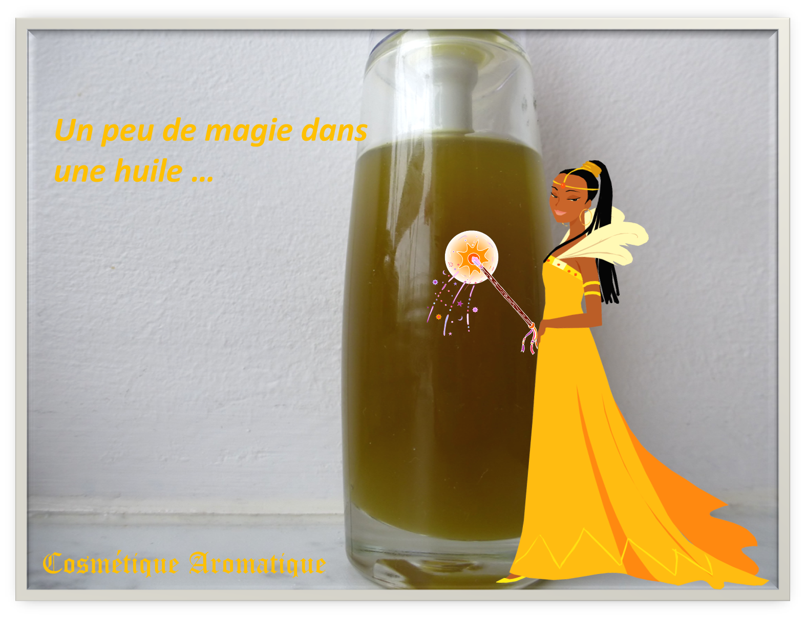 Après mon savon minceur (ICI), j’anticipe les dégâts du chocolat (blanc !!) que je viens d’engloutir. Voici une petite huile magique (oui, il va falloir qu’elle le soit, hein !).