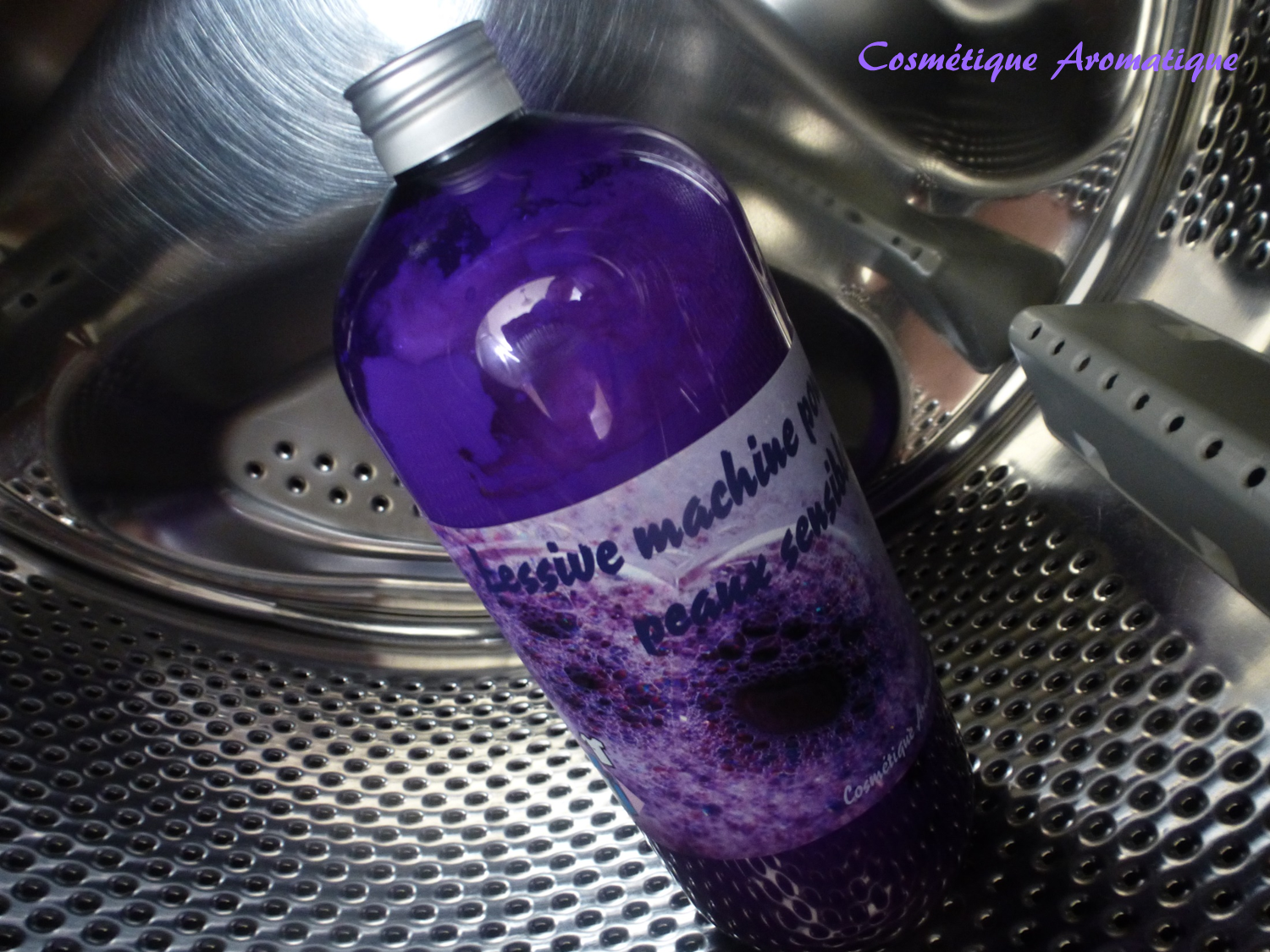 Et alors maintenant, qu’est-ce que j’ai mis dans ce beau flacon : une lessive liquide pour la machine réservée aux peaux sensibles.