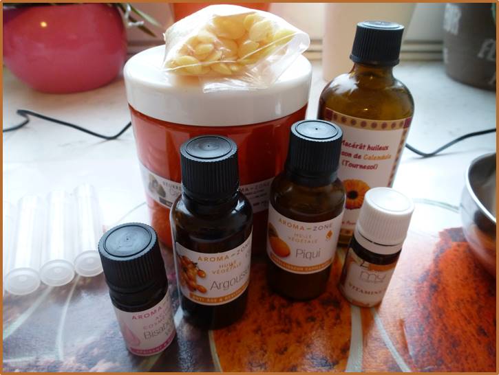 Ici, j’en ai mis pour l’argousier (dans lequel je n’ai pas rajouté de vitamine E lors de l’achat). Mon macérât de calendula maison en contient par contre.
