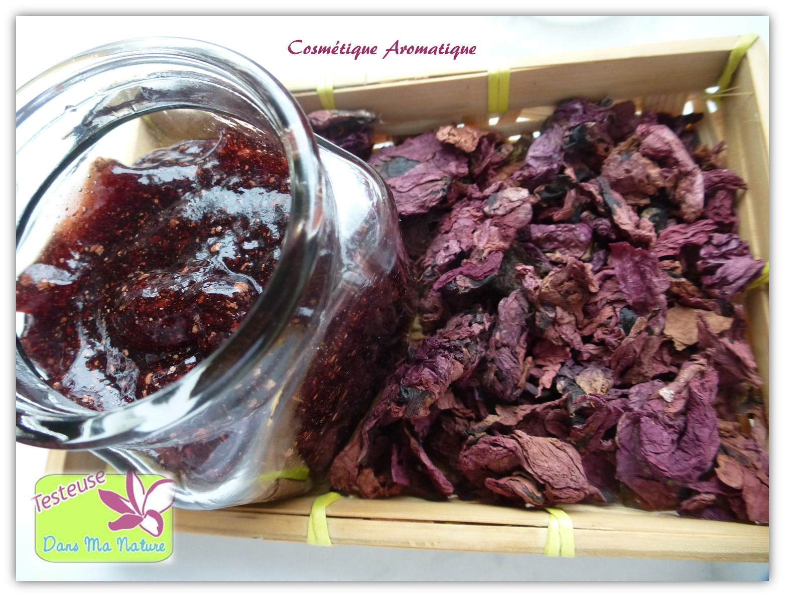 J’ai hésité entre une lotion ou un masque… et le masque a gagné ! J’avais envie de voir cette jolie couleur rouge foncé transformée en gelée.