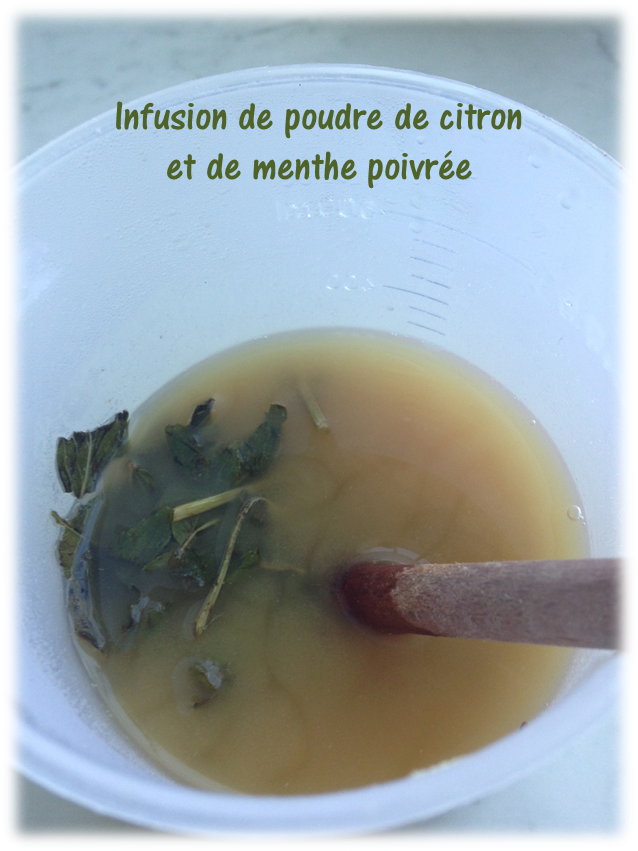 Réalisation de l’infusion de poudre de citron et de menthe poivrée