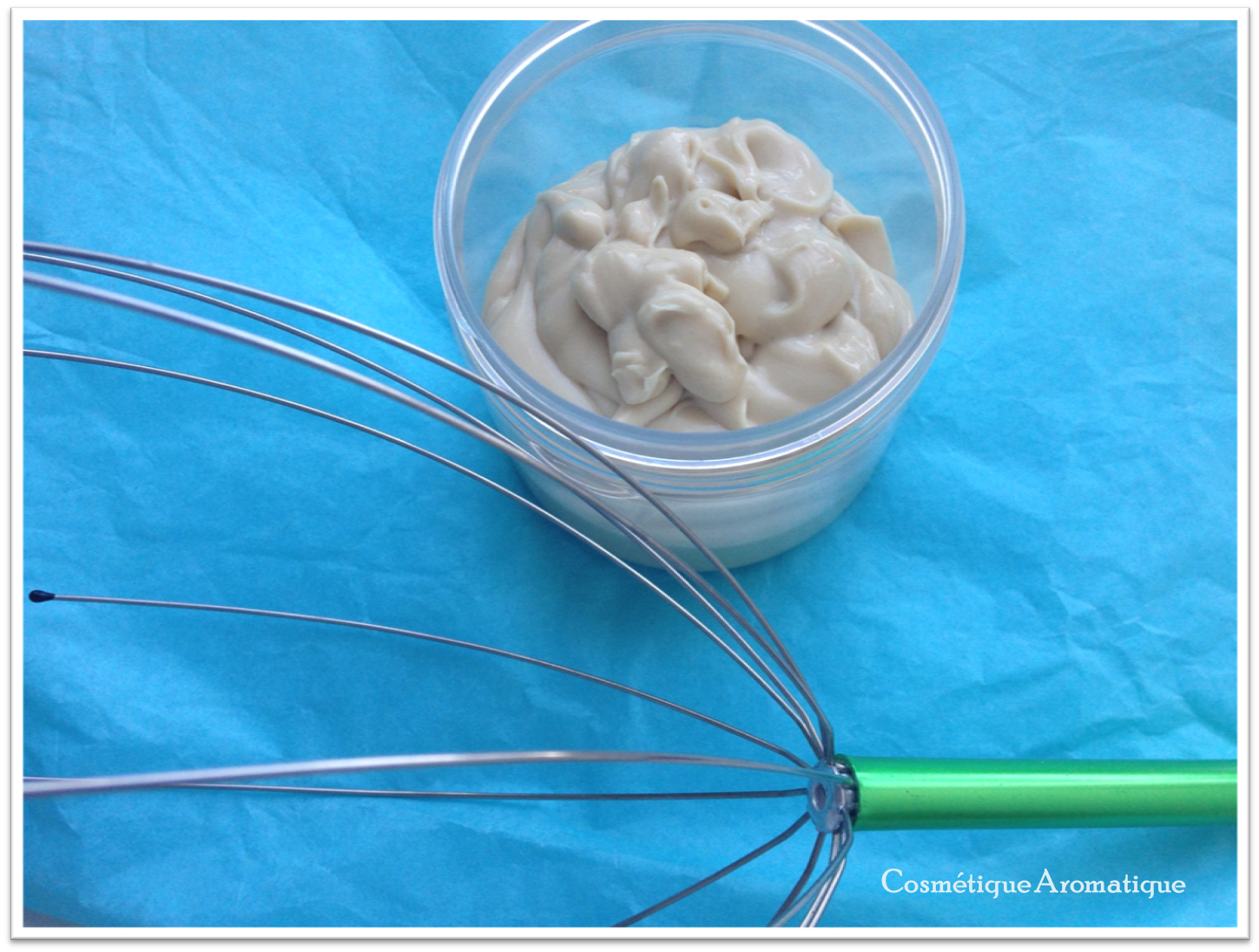 Une fois l’émulsion bien stabilisée et refroidie, ajoutez le reste des ingrédients en mélangeant bien entre chaque.