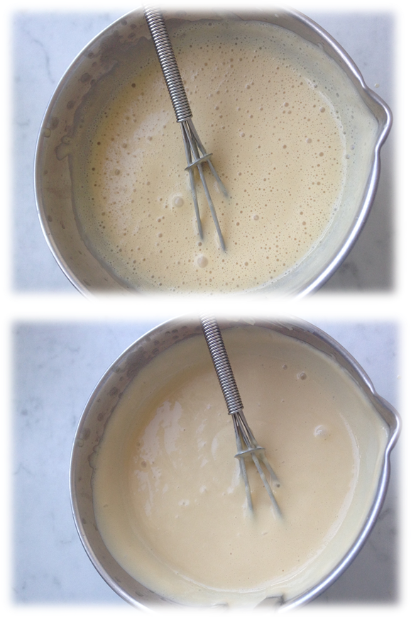 Chauffez séparément au bain-marie la phase huileuse et la phase aqueuse.