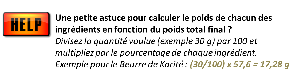La texture est parfaite, même si je pensais faire quelque chose de plus fluide (on ne fait pas toujours ce qu’on veut avec la cosmétique maison !!).